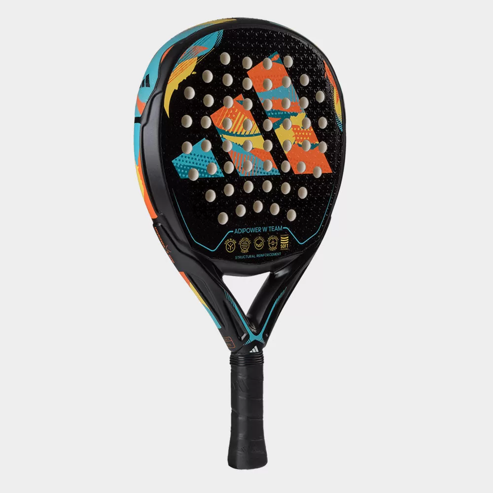 Follow the road to victory with the adidas adipower W Team! Built for winners, this lightweight padel racket brings the best of Adipower technology at a lower cost. It combines soft performance EVA rubber and a Fiber Glass surface for excellent comfort. Enjoy easy access to spin from the SPIN BLADE technology. STRUCTURAL REINFORCEMENT technology allows high torsion resistance to aggressive shots. Stylish and reliable, the adidas adipower W Team takes care of the tech so you can focus on winning!