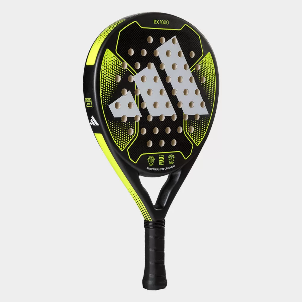 Support the intensity of your playstyle with the adidas Rx 1000! This versatile padel racket is perfect for intermediate players who want to bring out their best in every match. Enjoy a phenomenal feel from the low-density SOFT PERFORMANCE EVA rubber and FIBERGLASS surface. STRUCTURAL REINFORCEMENT technology allows high torsion resistance to aggressive shots. When the adidas RX 1000 is in your hands, the advantage is on your side!
