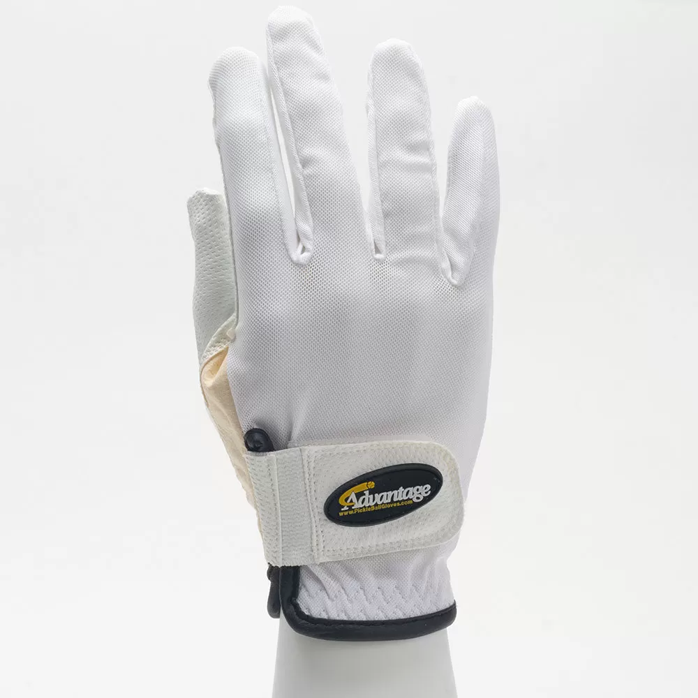 A pickle ball glove for pickle ball players This synthetic leather and mesh glove helps to improve a players grip on their paddle, especially when the game heats up. The Cool Mesh back helps to keep players hands cool and dry, for enhanced comfort. These gloves also help protect the skin from the suns harmful rays. The flexibility of the materials on these gloves allow for easy movement.