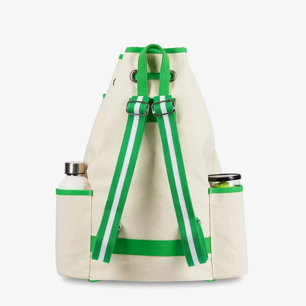 The Ame & Lulu Hamptons Tennis Backpack serves a fresh spin on the top-selling Hamptons Tour Bag. With adjustable cotton webbing straps and a chic silhouette add style on and off the court. On the interior, two mesh pockets hold your water bottles and tennis balls while an interior zip keeps valuables safe during your match.