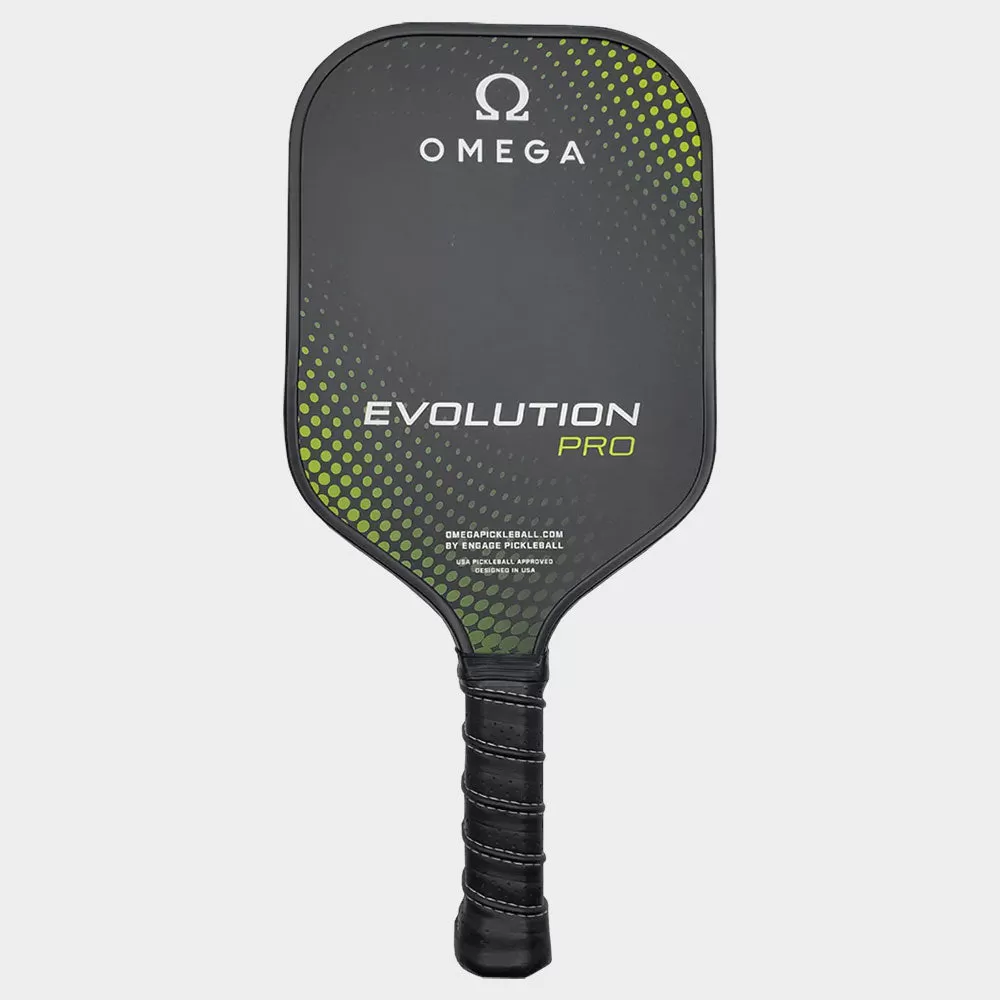The Engage Omega Evolution Pro is a textured paddle with a fiberglass face that perfectly blends power, control and spin. Designed to provide extra reach, this paddle features a 5/8 inch thick core to improve feel and control.