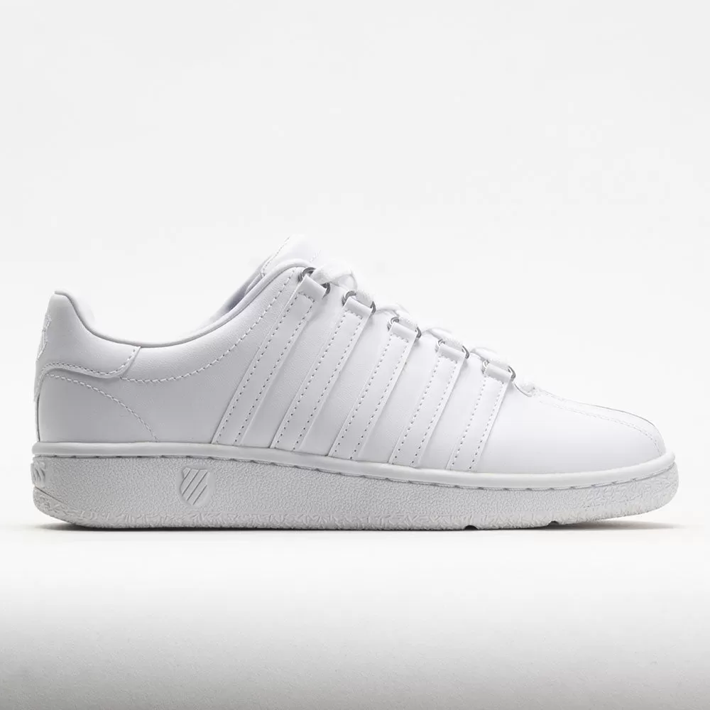 Inspired by leather ski boots, the K-Swiss Classic supports the aggressive lateral movements of tennis. This 4th generation court shoe maintains the trademark elements of the original with a 5-stripes design, D-ring lacing system, 3-piece toe construction and a herringbone brick outsole tread. New additions include a heel tab and modern logos to add a contemporary and modern flair. Recycled materials throughout the design take bold strides toward a sustainable future. If you want iconic comfort and vintage style, try the K-Swiss Classic!