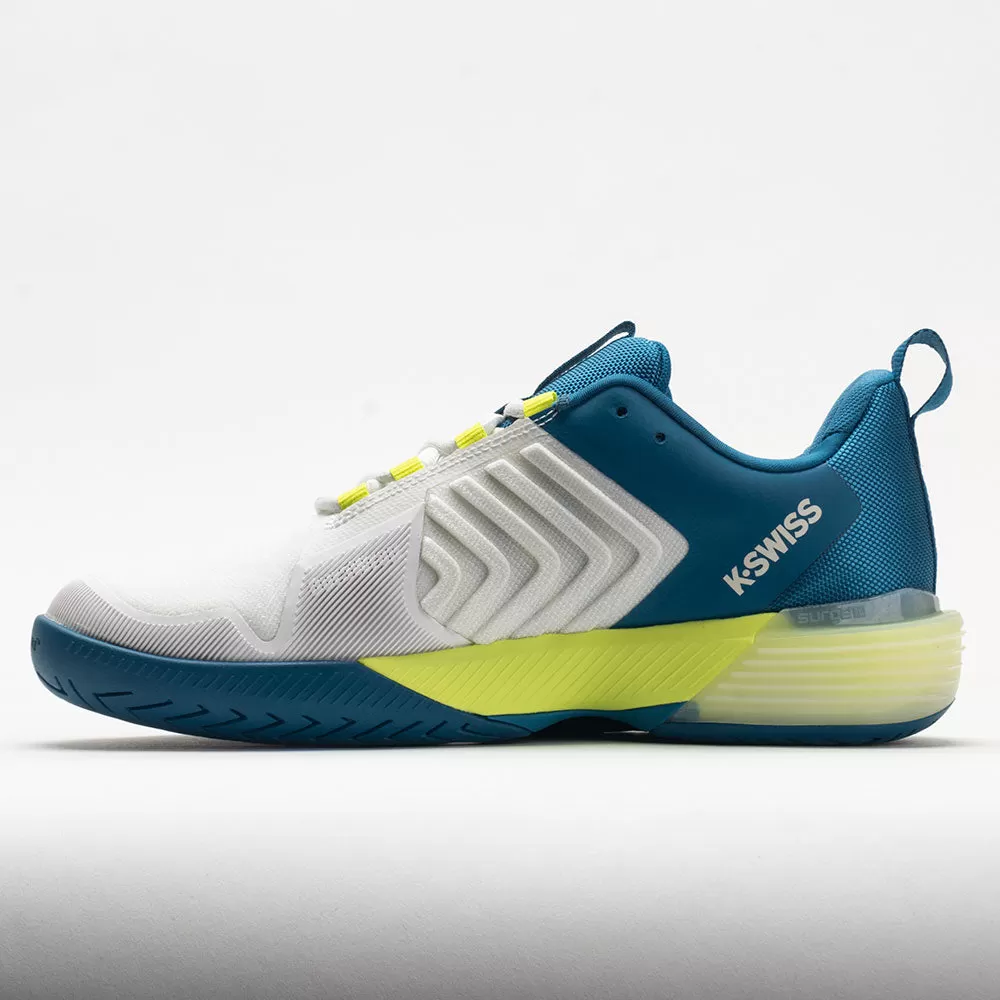 Built for the new wave of aggressive and powerful tennis players, the K-Swiss UltraShot 3 enables rapid movements. With a protective DuraWrap around the toe and DragGuardâ„¢ 7.0 technology in the heel, this tennis shoe protects you in key areas. Move confidently in any direction with the 360 Plantar Support Chassis in the midsole. Stay energized during long matches on the lightweight Surge 7.0 midsole. Built for fierce rallies against tough competition, the K-Swiss UltraShot 3 helps you play at a high level!