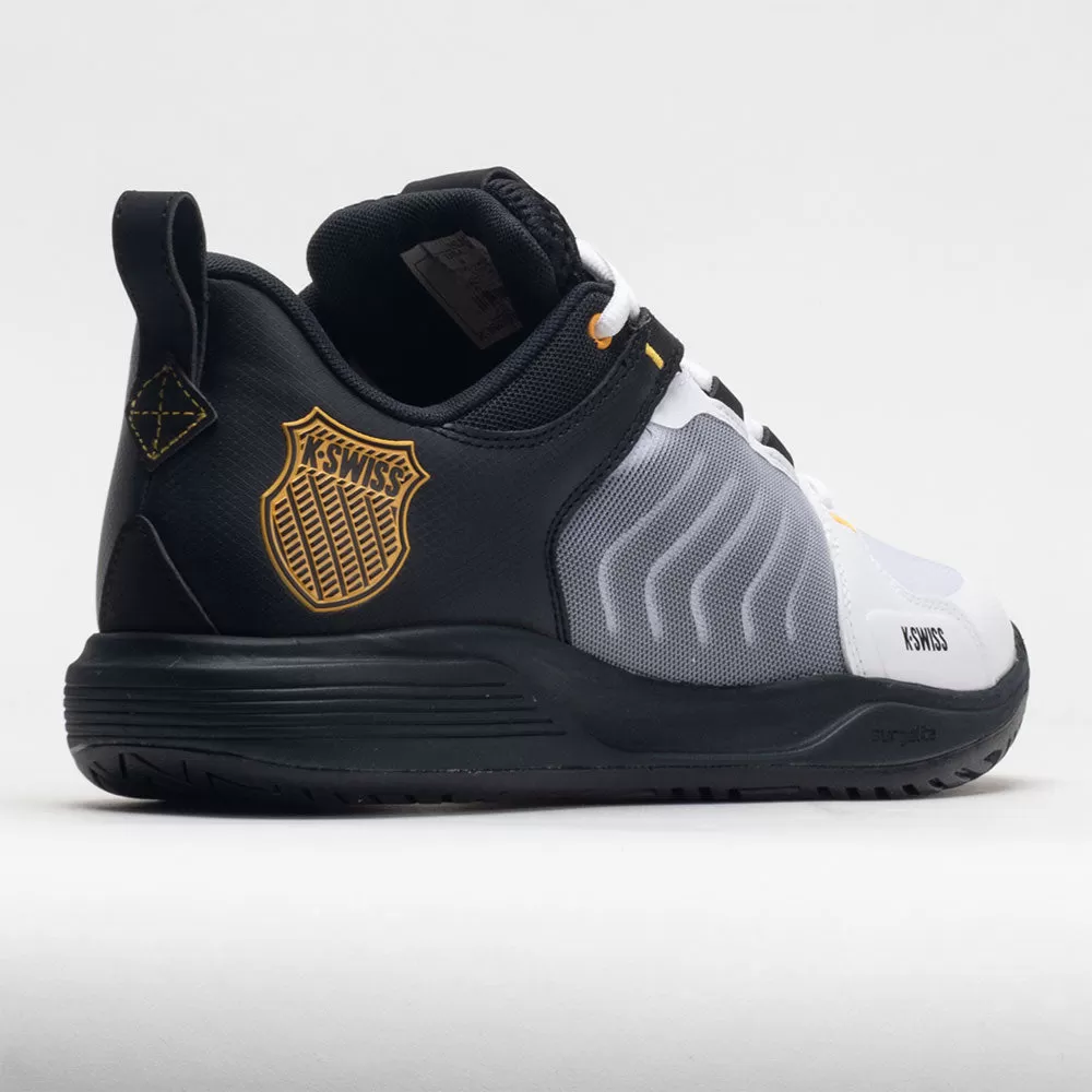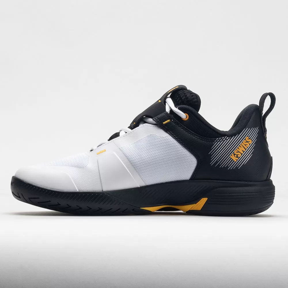 Get support for any surface in the K-Swiss Ultrashot Team! As a member of the Ultra family, this budget-friendly version of the Ultrashot 3 tennis shoe provides comfort and support at a lower cost. Slide into a light and breathable mesh upper with translucent paneling for sophisticated style and reliable comfort. Stay energized during long matches on the lightweight Surge 7.0 midsole. Key visual elements like the five chevron stripes on the quarter and enlarged shield logo on the heel create a tennis and lifestyle vibe every time you take the court.