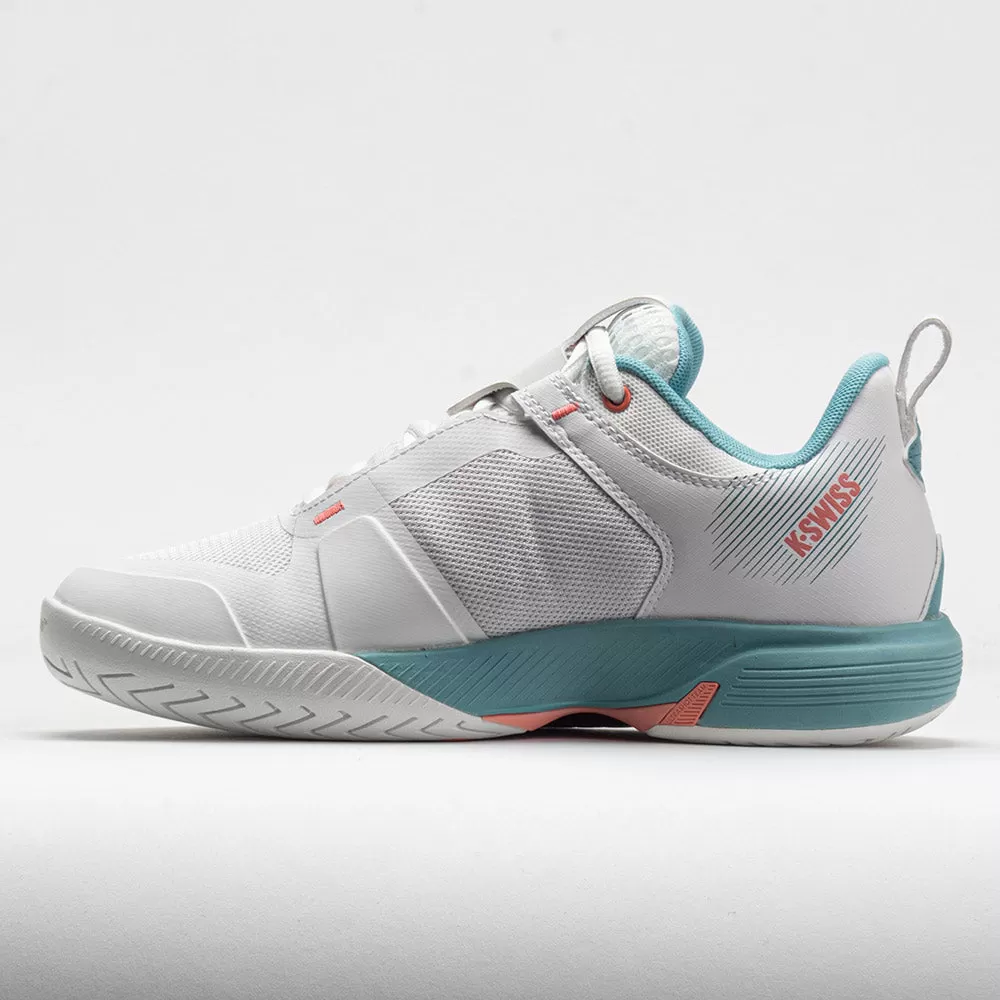 Get support for any surface in the K-Swiss Ultrashot Team! The latest member of the Ultra family, this budget-friendly version of the Ultrashot 3 tennis shoe offers durability and comfort at a lower cost. Slide into a light and breathable mesh upper with translucent paneling for sophisticated style and reliable comfort. Stay energized during long matches on the lightweight Surge 7.0 midsole. Key visual elements like the five chevron stripes on the quarter and enlarged shield logo on the heel create a tennis and lifestyle vibe every time you take the court.