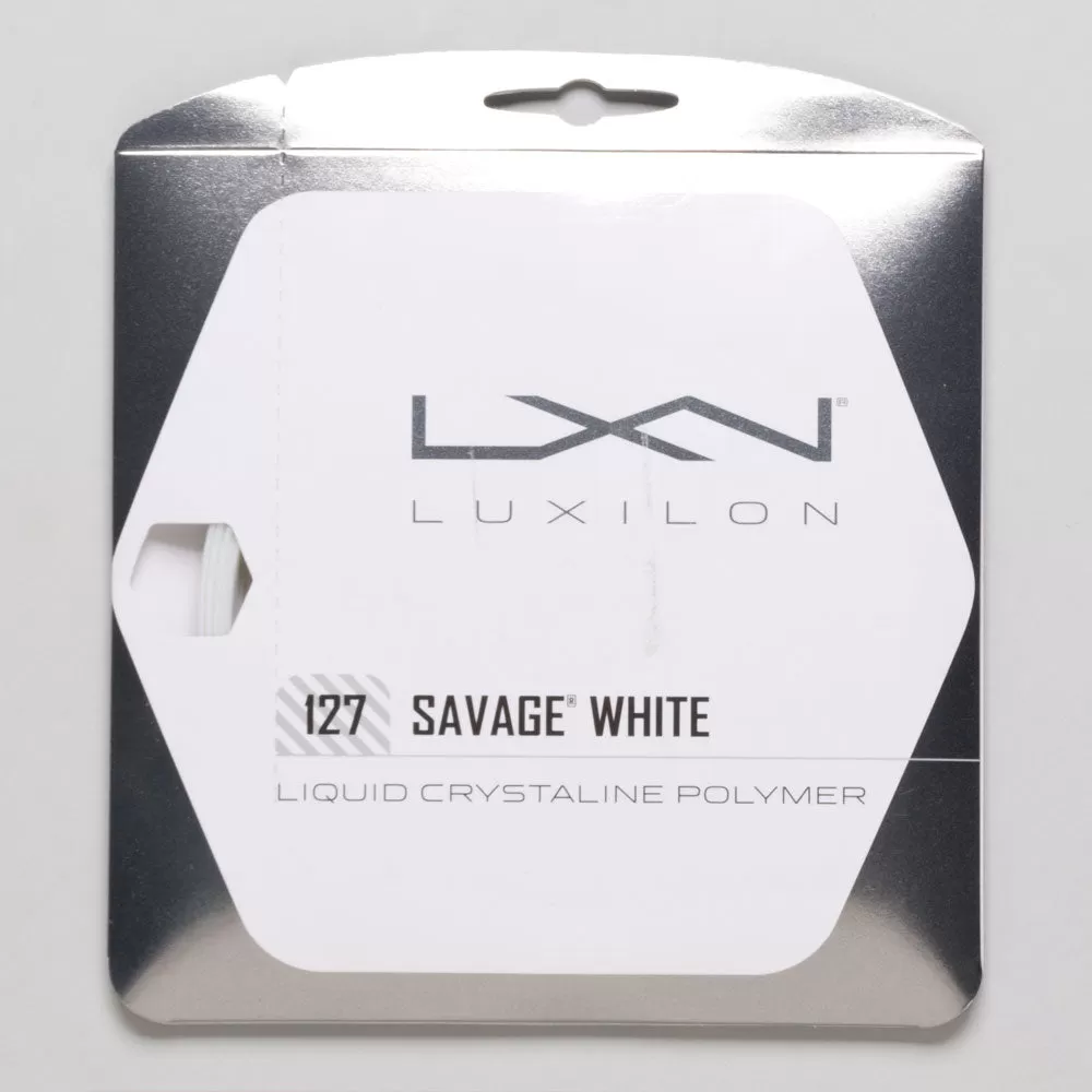 Polyesters. Designed for players who want to hit hard, heavy shots; now you can unleash your power with Luxilon Savageā¢. Savage⢒s unique six-sided shape provides extreme spin potential. Enjoy enhanced feel with Liquid Crystal Polymer construction.
