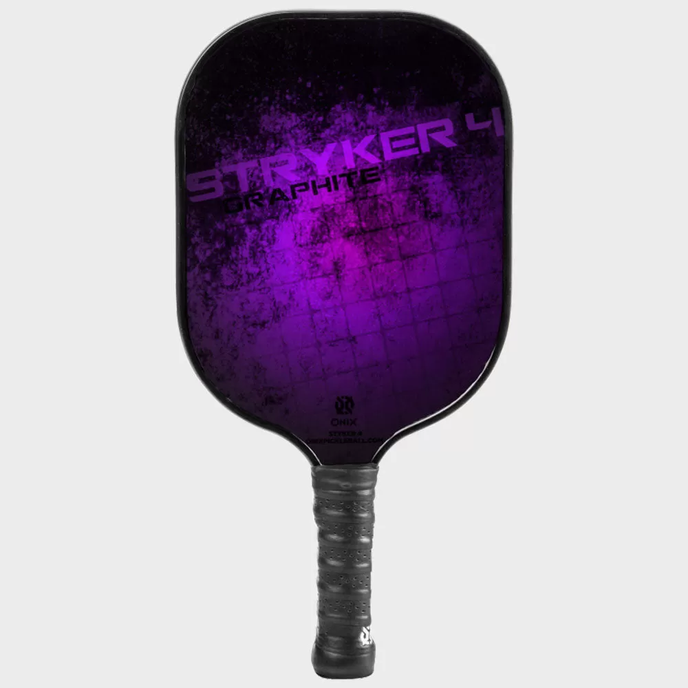 The Onix Stryker 4 Graphite Pickleball Paddle provides players with a balance of power, touch, and pop on the ball. The lighter graphite material promotes a much lighter feeling, promoting enhanced speed and paddle maneuverability. An oversized paddle shape provides a larger hitting surface and in turn a larger sweet spot.