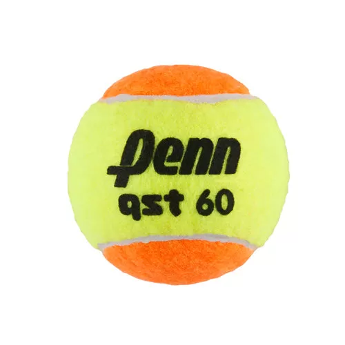 The Penn QST 60 Felt 12 Pack of Training Balls are geared toward more advanced young players between ages 9 and 10 hitting on a 60 foot tennis court. These balls feature a low compression designed core that allows for the chance to have longer rallies. The bold yellow and orange felt stands out on the court.