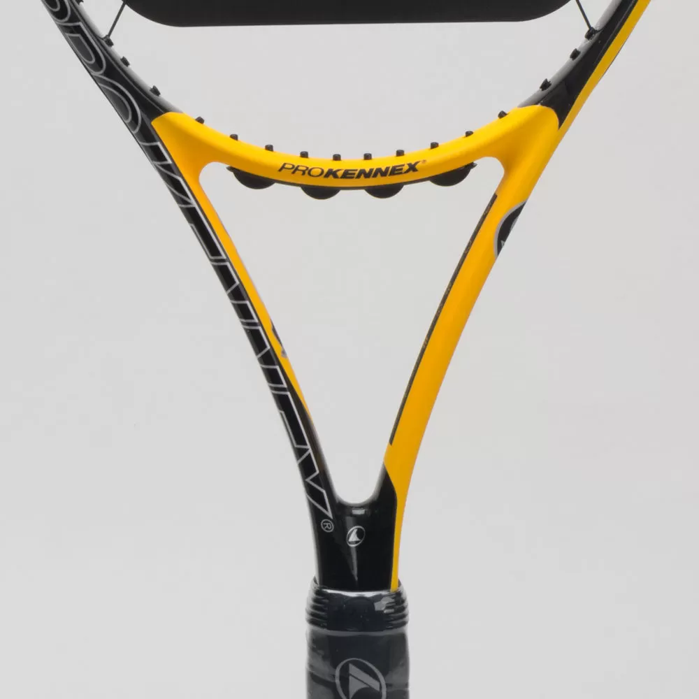 The ProKennex Black Ace 300G provides the perfect balance between power and flexibility on the court. This tennis racquet uses Spiral Tech graphite filaments to provide maneuverability and acceleration. Enjoy an exceptional feel from the Kinetic System’s stabilizing torsion in the frame. The shoulder’s trapezoid shape grows out of the handle in harmony with the oval shape of the head, creating a clean impact with the ball. For players who want to perform at full power without sacrificing precision, take a swing with the ProKennex Black Ace 300G!