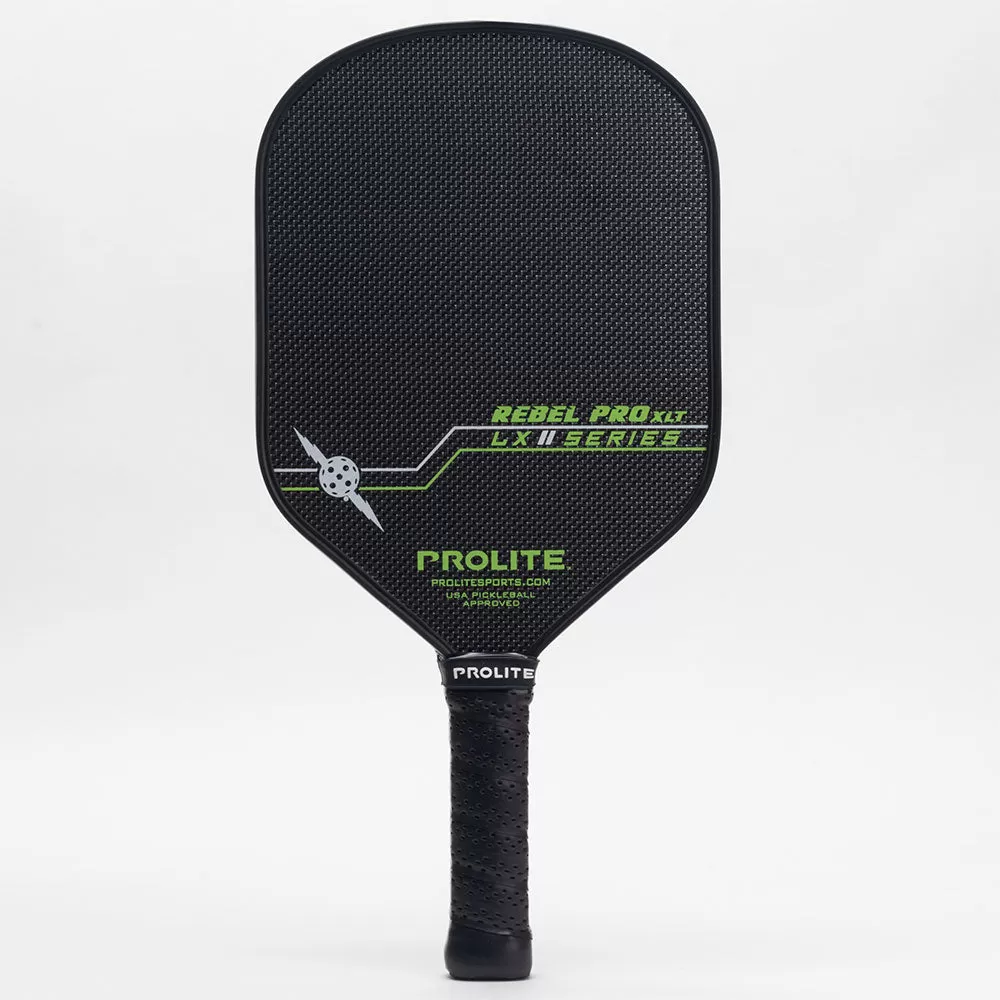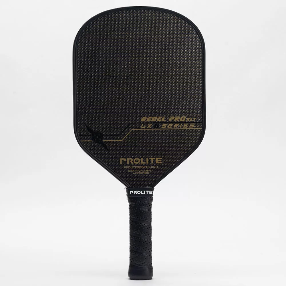 The PROLITE Rebel Pro XLT LX is designed for the pickleball player looking for extra length in the handle for a two-handed backhand and a tennis background. The Hyperweave Carbon Fiber utilizes a tighter cross-weave interwoven with gold or silver fibers for uniform strength, speed, and consistency in each shot. Constructed with three layers of carbon fiber surrounding each side of the paddle core, it results in an overall 14 mm thickness improving feel, durability, and increased vibration dampening qualities. PROLITE’s flagship 14 MM core thickness provides the optimum balance of feel and vibration absorption without sacrificing power.