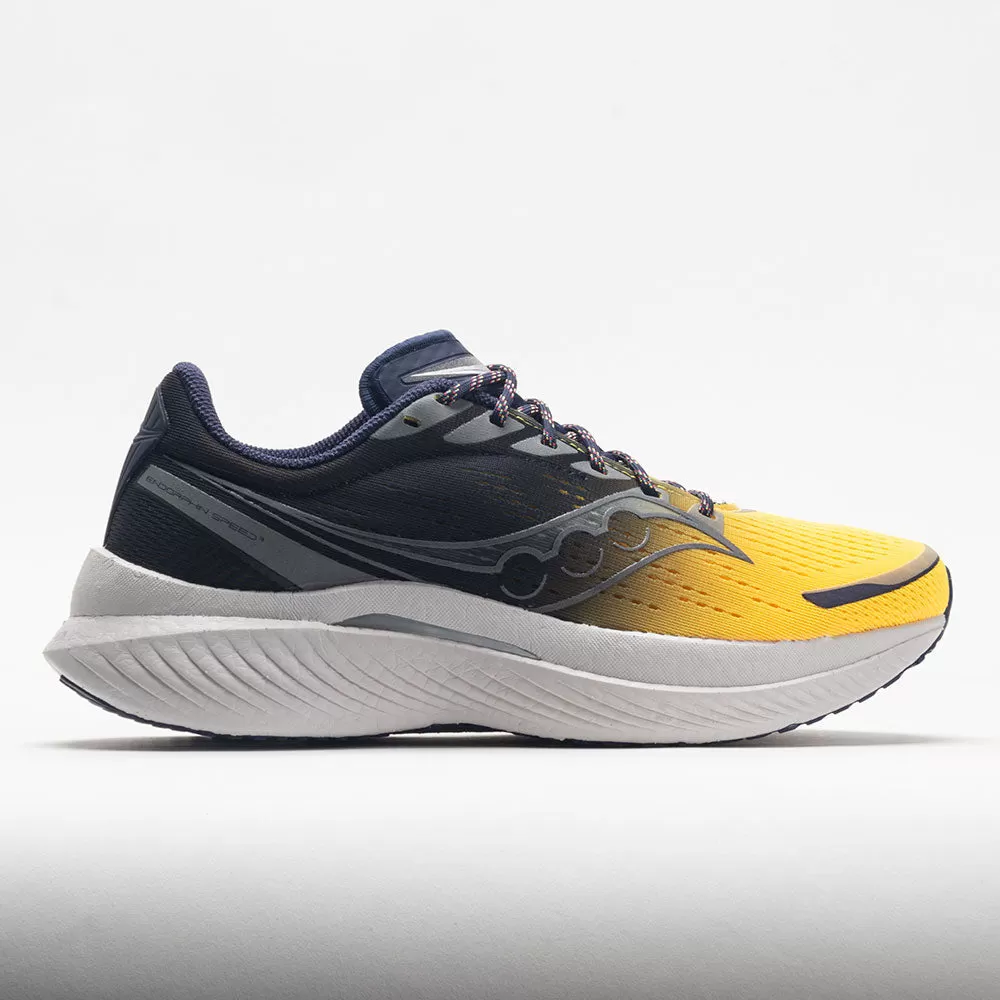 Push the pace in the Saucony Endorphin Speed 3! This swift neutral running shoe helps you work hard and run faster. Slip into a fully redesigned upper and enjoy comfort from every angle. The updated geometry gives you a smooth shortcut to your speed. Feel more support throughout the gait cycle from the reimagined S-curve winged nylon plate. From landing to lift-off, the Saucony Endorphin Speed 3 is fit to go fast!