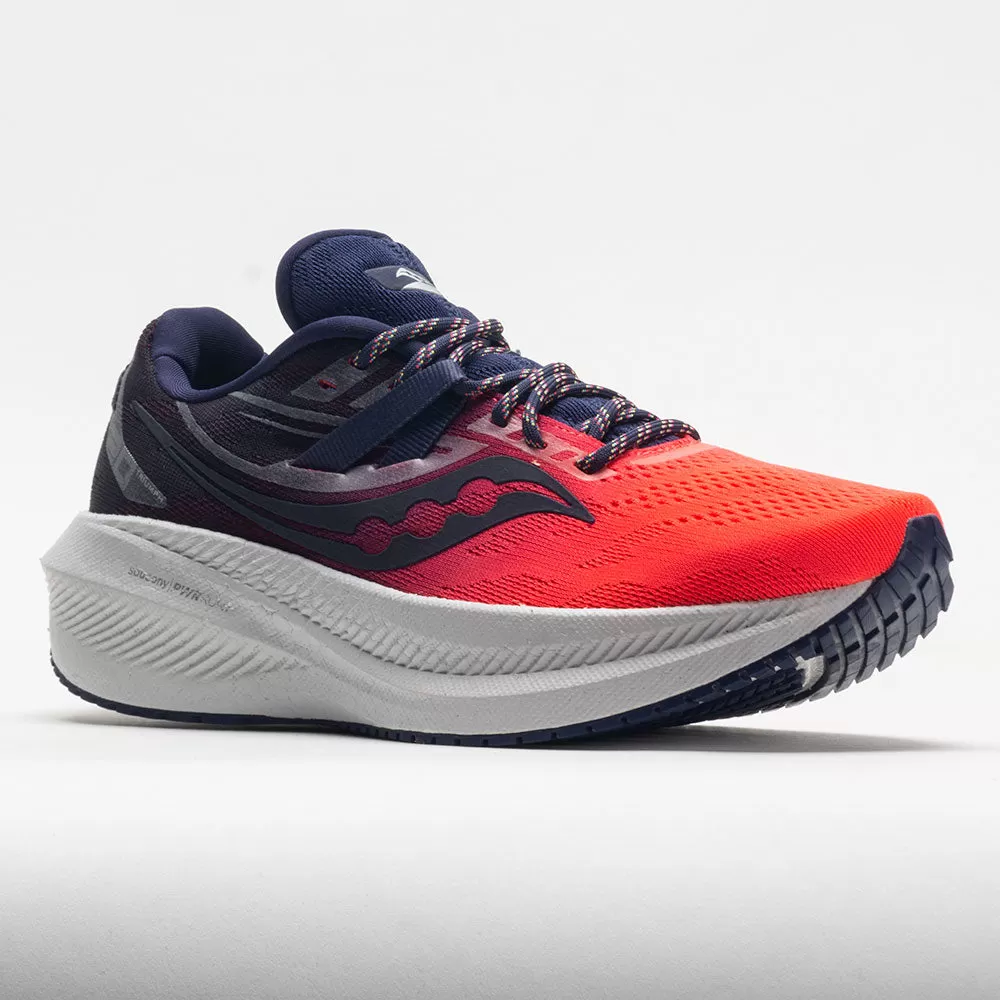 Find your flow in the Saucony Triumph 20! Crafted for comfort, this neutral running shoe features a softer and lighter PWRRUN+ foam for a smooth and irresistible ride. Enjoy a soft step-in feel from the updated upper and lacing system. Slip into a groove with every stride under the PWRRUN+ foam midsole. The durable rubber outsole extends longevity for maximum mileage. With customized comfort and long-lasting softness, the Saucony Triumph 20 makes it easy to get lost in the miles!