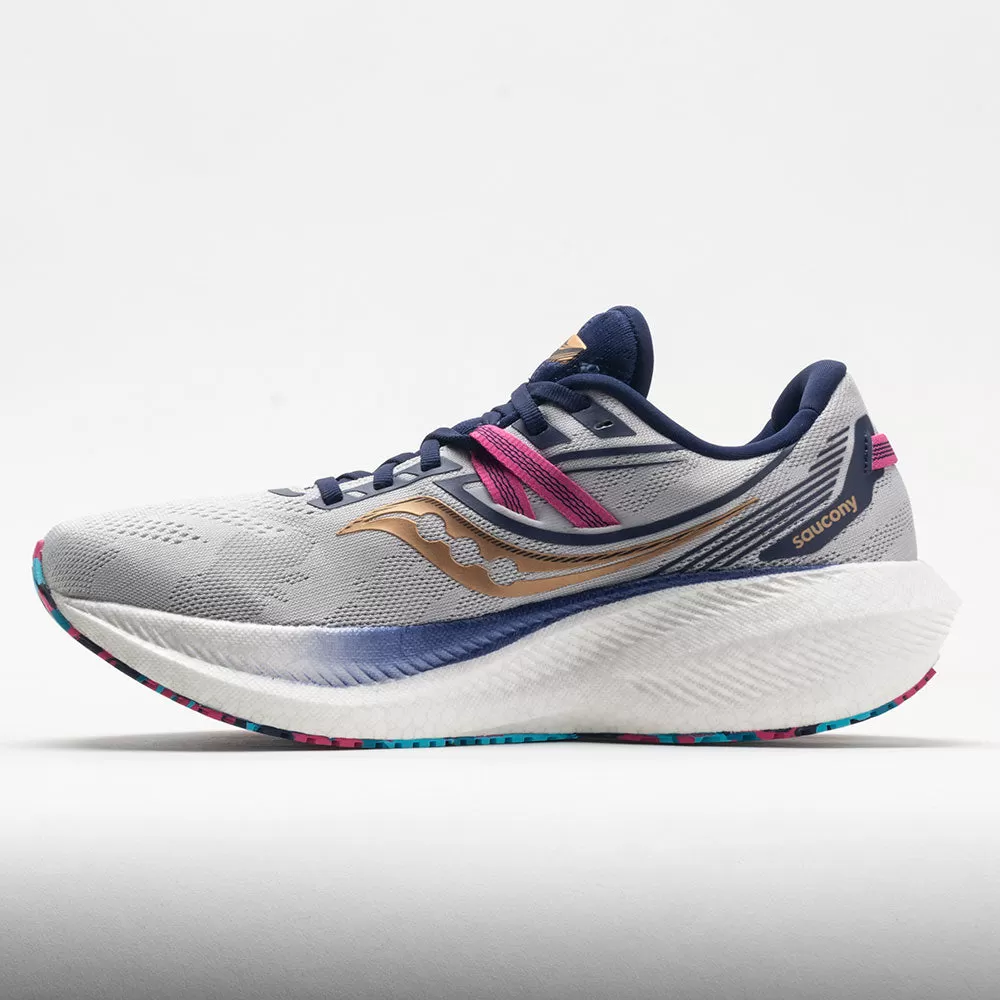 Find your perfect pace in the Saucony Triumph 20! Crafted for comfort, this neutral running shoe features a softer and lighter PWRRUN+ foam for a smooth and irresistible ride. Enjoy step-in comfort from the engineered mesh upper. Slip into a groove with every stride under the PWRRUN+ foam midsole. The durable rubber outsole extends longevity for maximum mileage. With customized comfort and long-lasting softness, the Saucony Triumph 20 makes it easy to get lost in the miles!