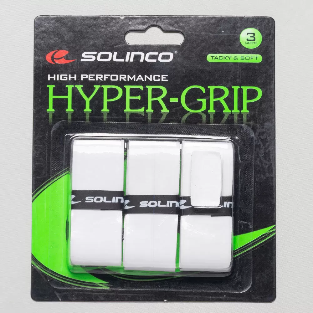 Soft and tacky, the Solinco Hyper-Grip Overgrip 3 Pack offers high performance for the match. This polyurethane overgrip gives players plush comfort and an incredible feel from their first swing to the final point.