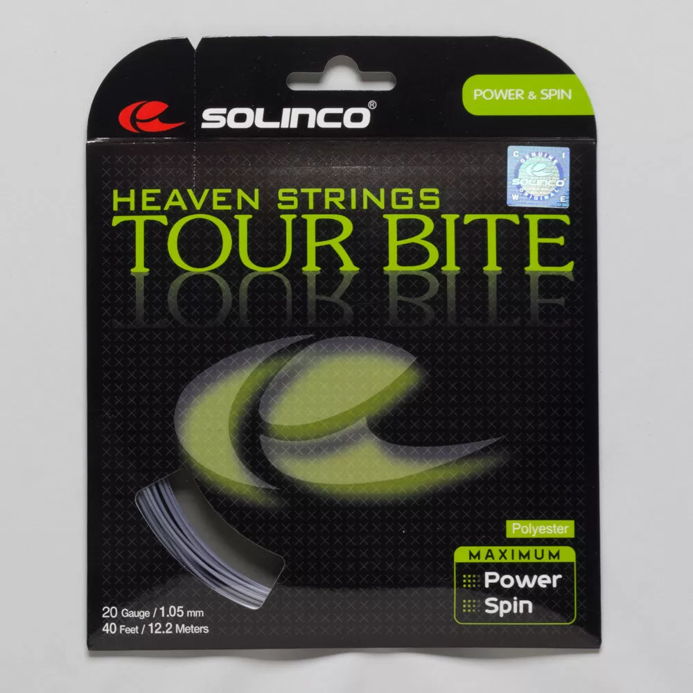 With one of the thinnest gauges around at 20 gauge, the newly developed Solinco Tour Bite 20 1.05 tennis string provides enhanced ball feel and bite. This string is a high-performance and versatile polyester designed to generate extreme power and intense spin and bite. It uses an innovative, high-powered polyester monofilament fiber that generates maximum power while amplifying the spin and bite intensity of the ball.