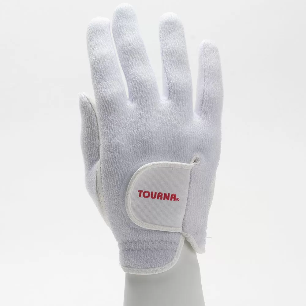 The Tourna Tennis Glove Full Finger Right for Men provides the best, most secure connection to your racquet. Made from a soft and thin Cabretta leather material, this glove provides a non-slip grip, shock absorption, and supreme feel and comfort. Terry cloth at the back provides a cooling feel in hot weather and the full finger design offers full coverage and warmth in cold weather.