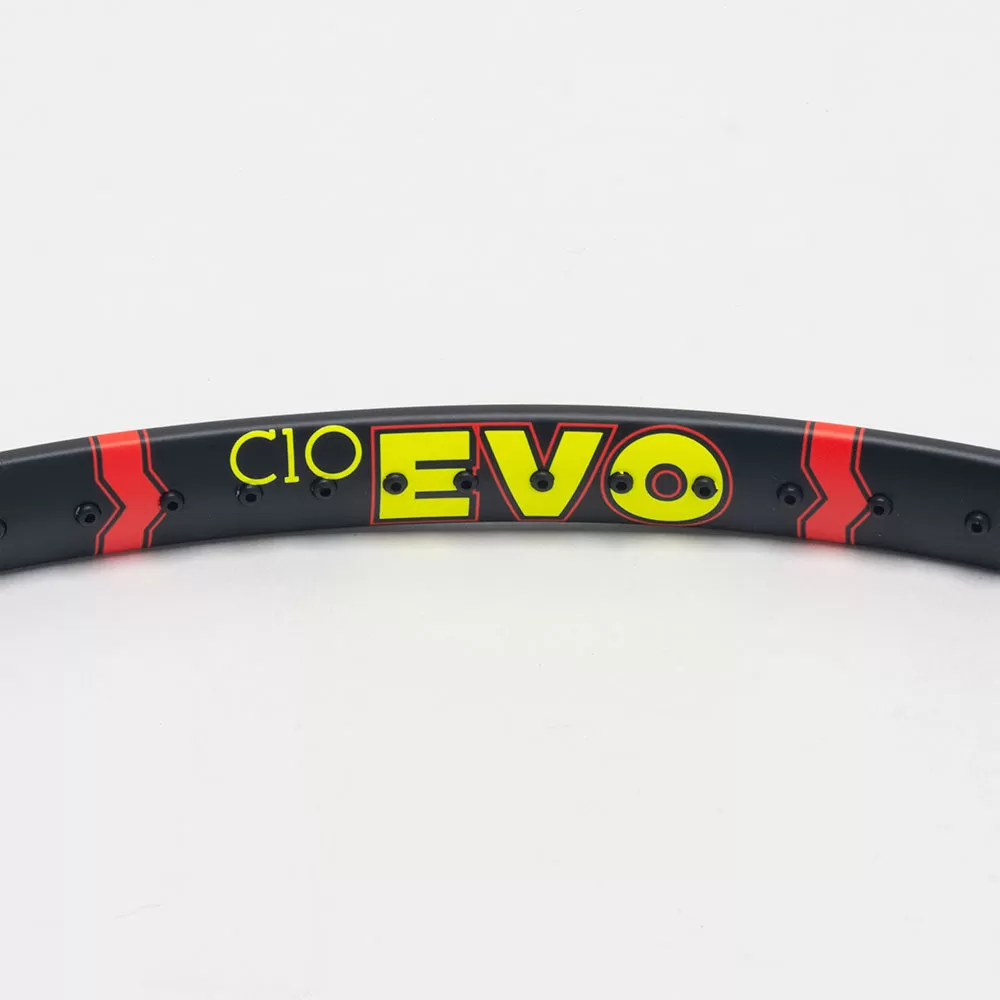 The Volkl C10 EVO offers a balanced feel with soft flex, giving advanced players the ultimate lightweight frame. This lighter version of the C10 shares the same thin beam frame design that players can customize to meet their needs. Stability in the frame absorbs impact for hard hit balls, allowing you to return with heavy topspin. Fast and light with impeccable control, the Volkl C10 EVO belongs in the hands of winning players!