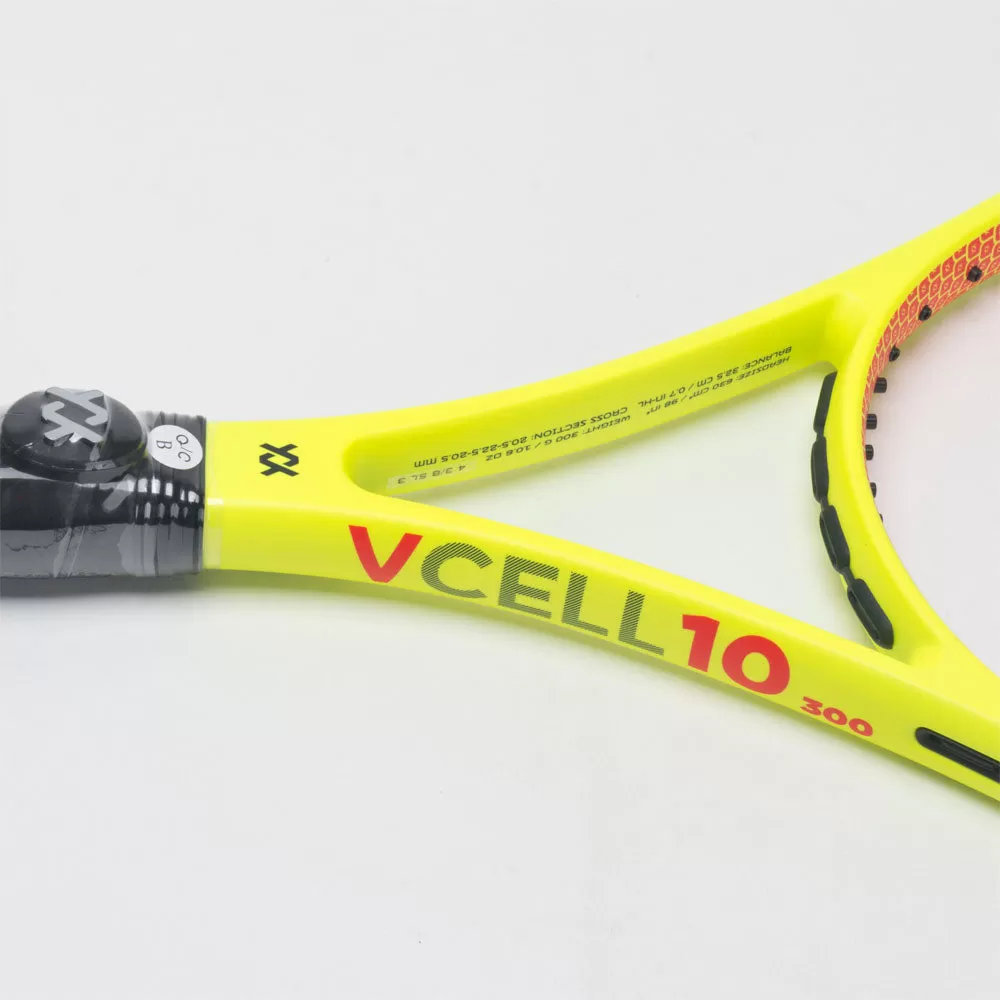 Comfortable and precise, the Volkl V-Cell 10 300g helps advanced players control the court. This thin-beam racquet uses a new shape and taper to give players more power and spin. The Sensor Handle and VTEX butt cap combine to lead smooth, comfortable swings. Enjoy easy handling and maneuverability from the Super Grommet system with Big Grommet tech. For players who want the confidence to hit their best shots from anywhere on the court, the Volkl V-Cell 10 300g is your secret weapon!