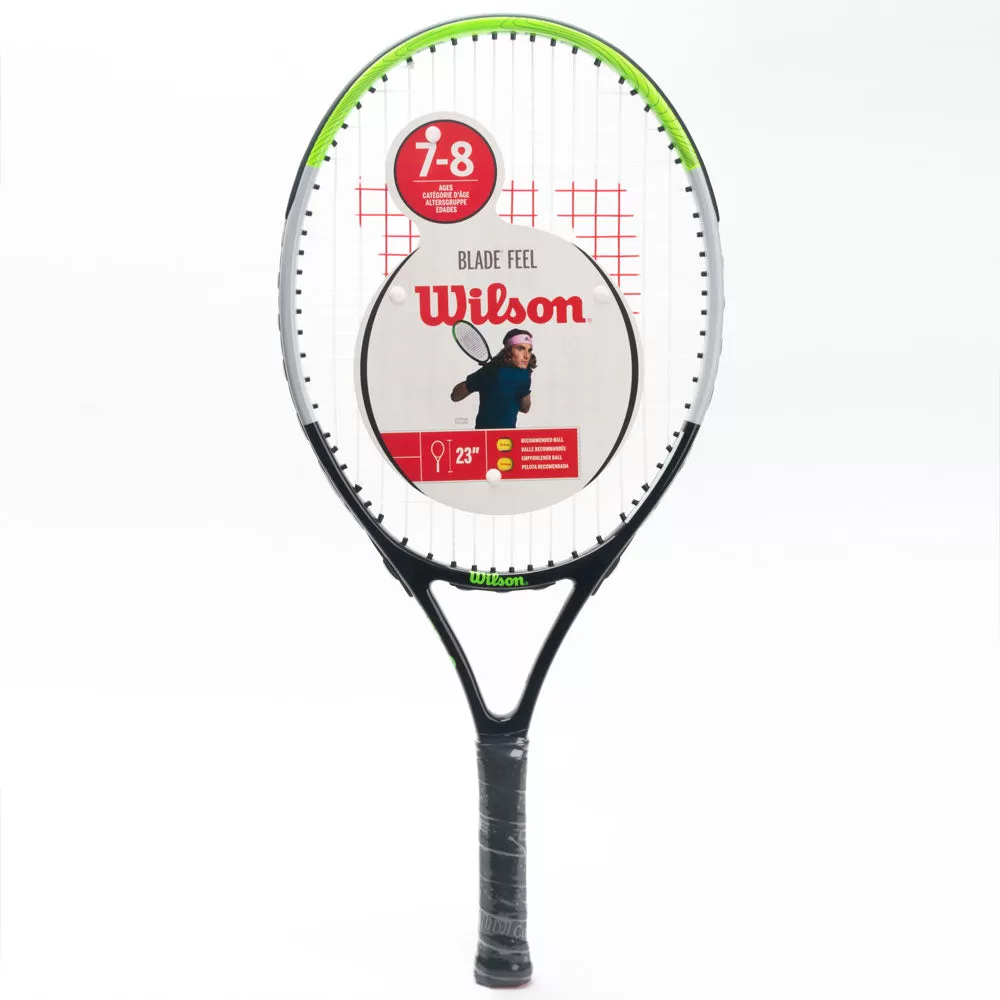 The Wilson Blade Feel 23″ gives developing juniors a mix of playability, feel, and design. This racquet provides stiffness and flexibility from its fused graphite and aluminum construction, which lends a solid control of every stroke. A clean and electrifying design adds a finishing touch for juniors looking to improve their game.