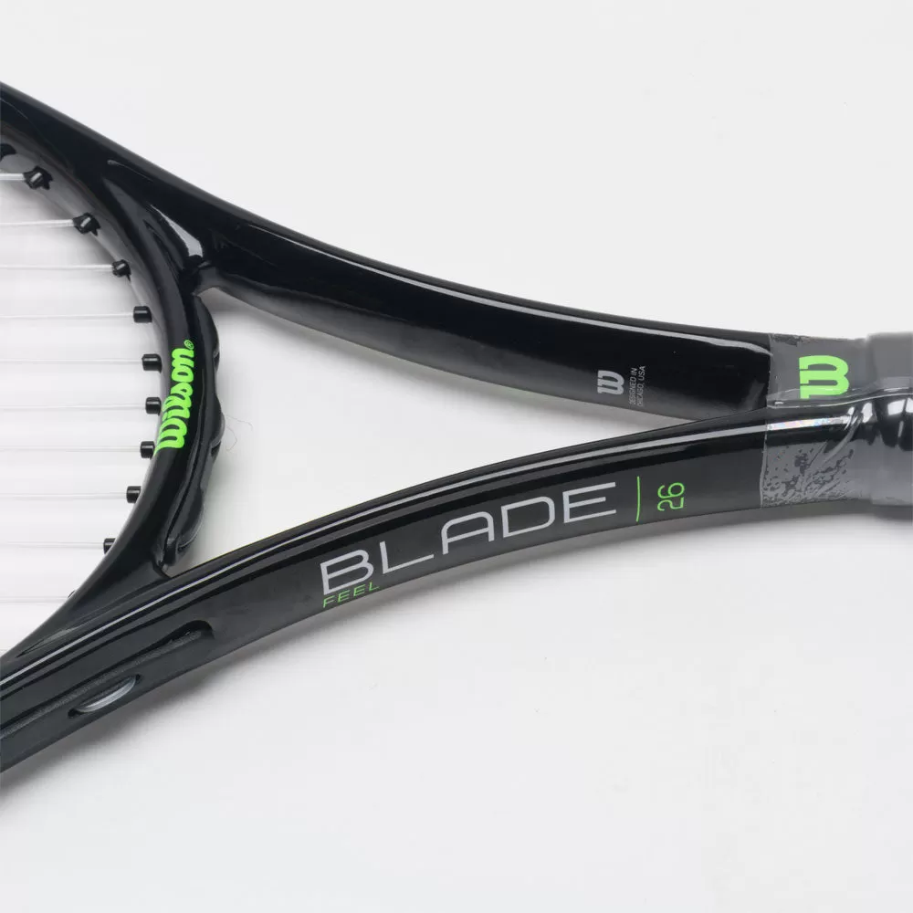 The Wilson Blade Feel 26″ gives developing juniors a mix of playability, feel, and design. This racquet provides stiffness and flexibility from its fused graphite and aluminum construction, which lends a commanding feel of every stroke. A clean and electrifying design adds a finishing touch for juniors looking to improve their game.