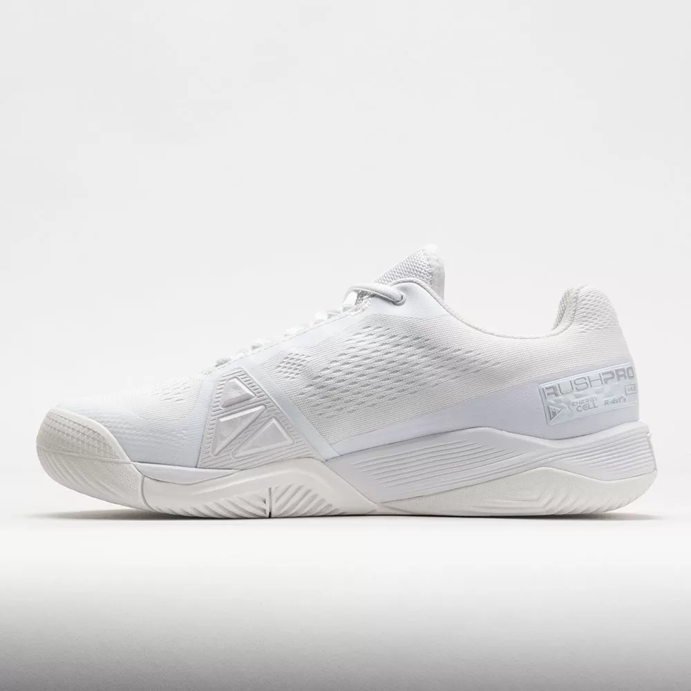 The Wilson Rush Pro 4.0 upgrades dynamic court movement with innovations in the midsole and outsole. An evolution of the Rush Pro 3.5 chassis construction, 4D Support Chassis 2.0 splits the chassis into two pieces for a dual purpose. One piece runs under the foot to enhance support and forward propulsion, while the other runs laterally for stability and control. In the forefoot, Energy Cell features a lightweight EVA foam for energy return and explosive propulsion. Layer in a sleek silhouette, and the Wilson Rush Pro 4.0 takes your game and style to new heights!
