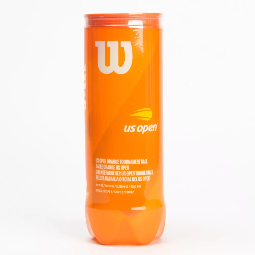 Low compression Wilson US Open Tournament Orange felt tennis balls bounce 50% lower than standard balls. The lower compression makes them the perfect choice for training on 60 courts, driveways, and playgrounds.